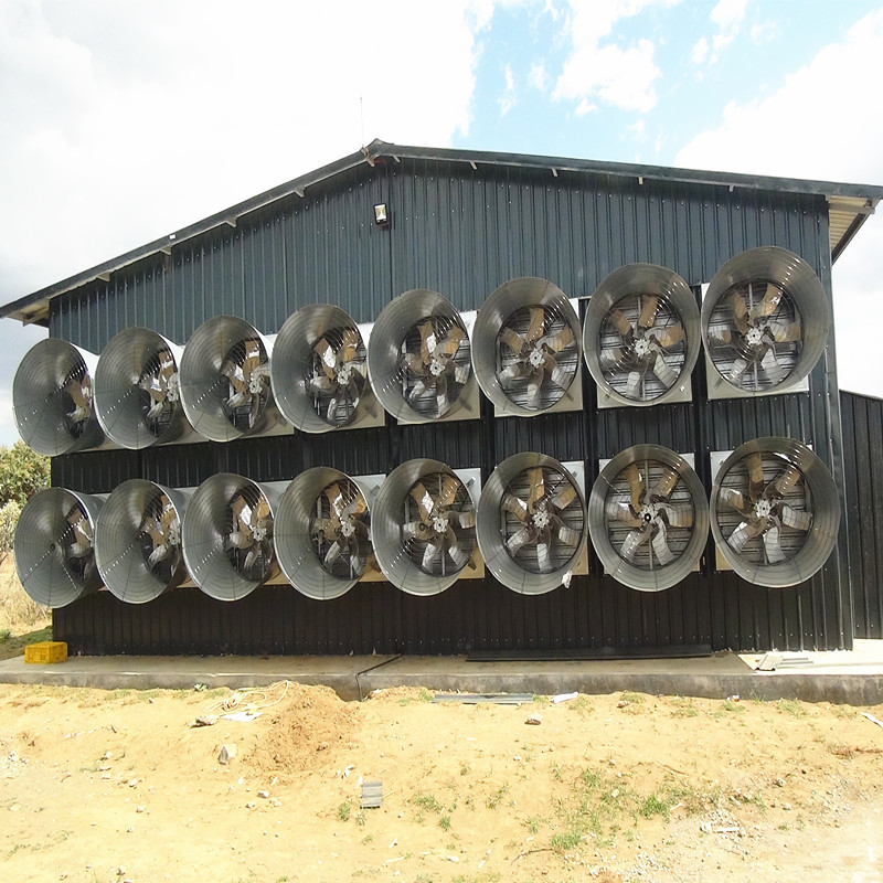 ফ্যানটি মূলত ব্লেড, মোটর, বাইরের ফ্রেম, গার্ড জাল, সাপোর্ট ফ্রেম, শাটার ইত্যাদি দিয়ে গঠিত।এটি কার্যকরভাবে ড্র্যাগ সহগ হ্রাস করে এবং সরঞ্জামগুলির সামগ্রিক কর্মক্ষমতা অনুকূল করে।যন্ত্রের প্রধান অংশগুলি (জাতীয় মান পুরু গ্যালভানাইজড স্তর) গ্যালভানাইজড শীট এবং স্টেইনলেস স্টিলের শীট দিয়ে তৈরি হয় কম্পিউটার সিএনসি মেশিন দ্বারা।এই পণ্যটি বিভিন্ন ধরণের পশুপালনে ব্যাপকভাবে ব্যবহৃত হয়।হাঁস -মুরগির খামার, গ্রিনহাউস, শিল্প কারখানা এবং অন্যান্য জায়গার জন্য বায়ুচলাচল এবং শীতলকরণ।